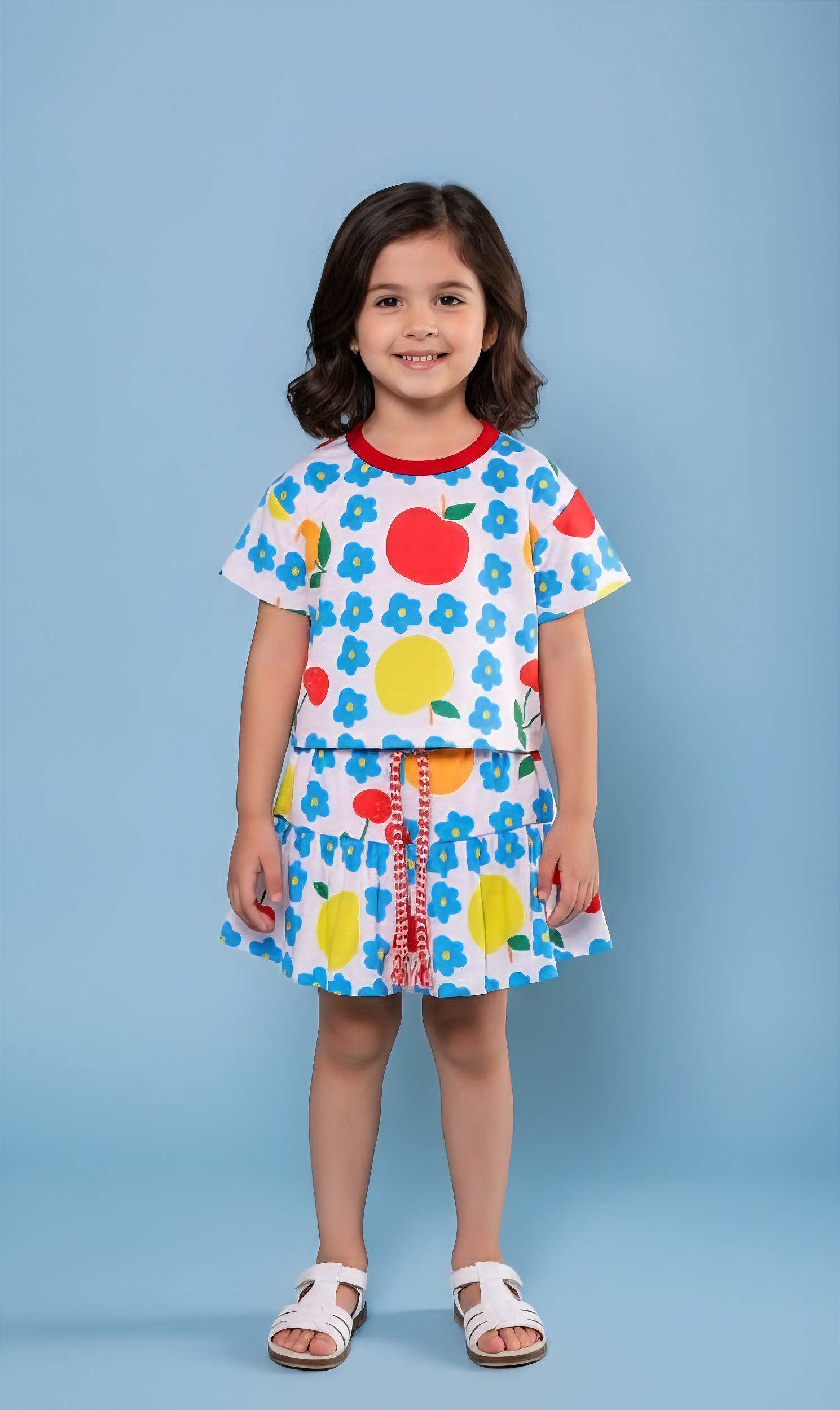 Deixe o verão das crianças ainda mais divertido e estiloso com o nosso conjunto com estampa mix floral e frutas! Feito em tecido leve e confortável, este conjunto é perfeito para os dias mais quentes. A blusa possui um design alegre com estampa floral e frutas vibrantes, enquanto o short acompanha a estampa, garantindo um look coordenado e cheio de charme. Ideal para passeios, festas ou momentos de lazer.