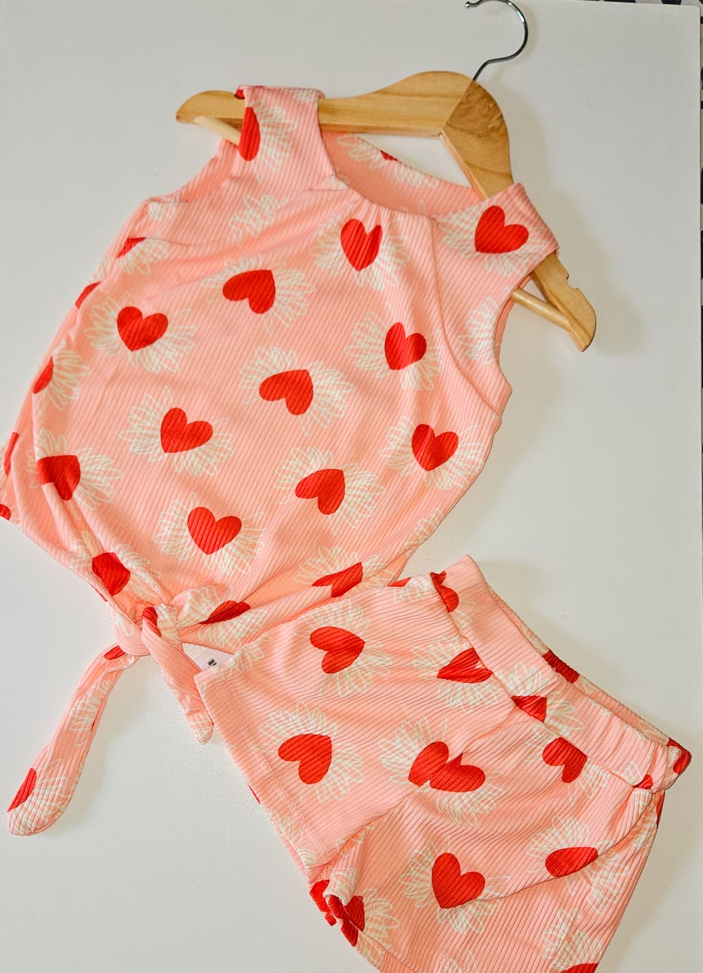 A blusinha com amarração frontal e o short soltinho completam o look com um toque moderno e cheio de charme! 🌷