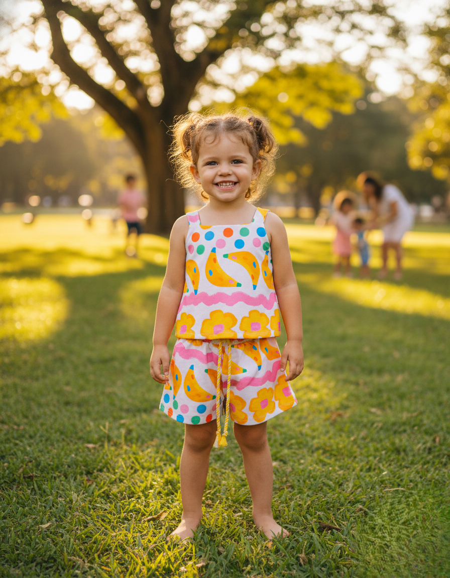 Cheio de alegria e personalidade, esse conjunto em malha Marisol é perfeito para acompanhar as crianças em todos os momentos do dia. A estampa divertida de frutas traz um visual alegre e moderno, enquanto o tecido macio garante conforto, leveza e liberdade de movimento.