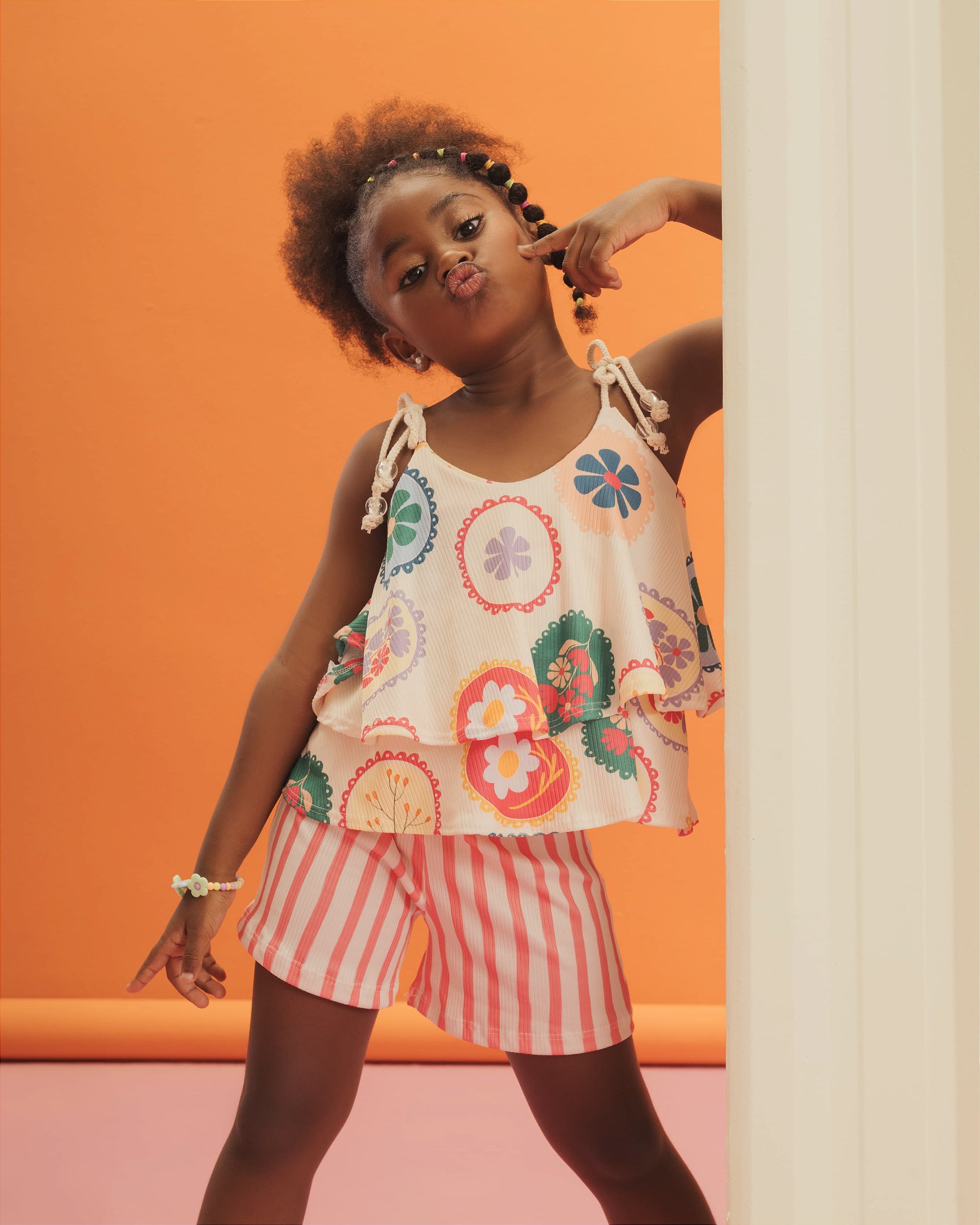 O Conjunto Flor & Listras Colorê é a combinação perfeita entre diversão, conforto e aquele charme que só a infância tem!