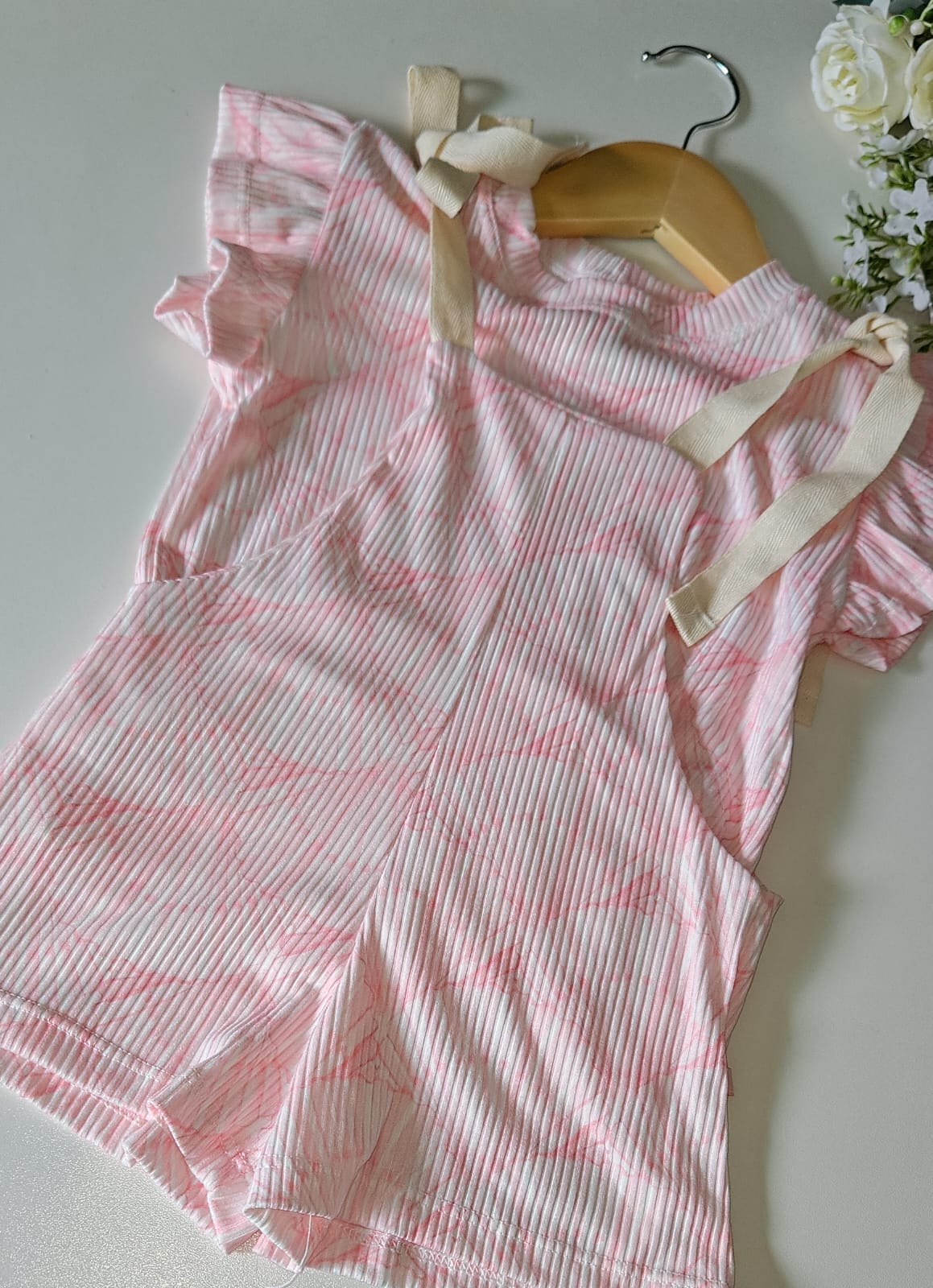 Confeccionado em malha canelada macia, o modelo tem amarras nos ombros que permitem ajuste perfeito e mangas com babadinhos, deixando o look ainda mais fofo e feminino.