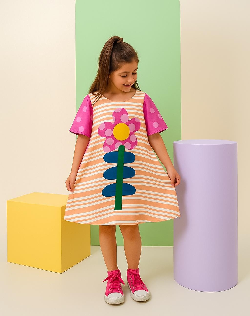 Que tal trazer ainda mais alegria para o dia a dia das pequenas? Este vestido é pura diversão e conforto! Com estampa de flor, cores vibrantes , ele é perfeito para momentos especiais ou para brincar com muito estilo.